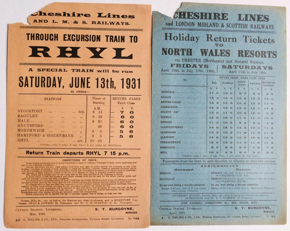 71CLC bookmark ‘Right Away and Right Way’. Blue print on blue card, front showing signal, rear showing timetable for Manchester – Liverpool service. Dated December 1930. £42