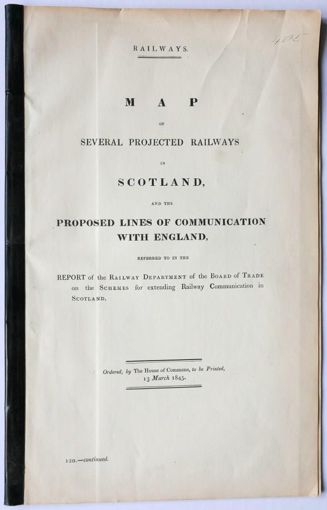 18Board of Trade Railway Department report on schemes for extending railway communication in South Wales. Foolscap sized, 6pp plus fold out map, dated 1842. Contained in modern, cloth bound hardback covers. Click here for second image£10