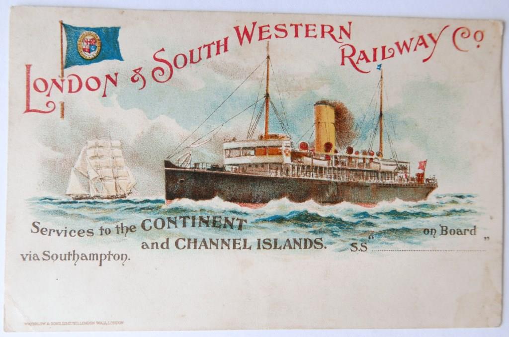 70Rail Chronicle Travelling Charts for the London – Basingstoke – Winchester and Southampton line on the South Western. Red cloth covers containing 20pp fold out ‘along the line’ type plan of the route, illustrating major sights. Circa 1846. Minor wear. Click here for second image£65
