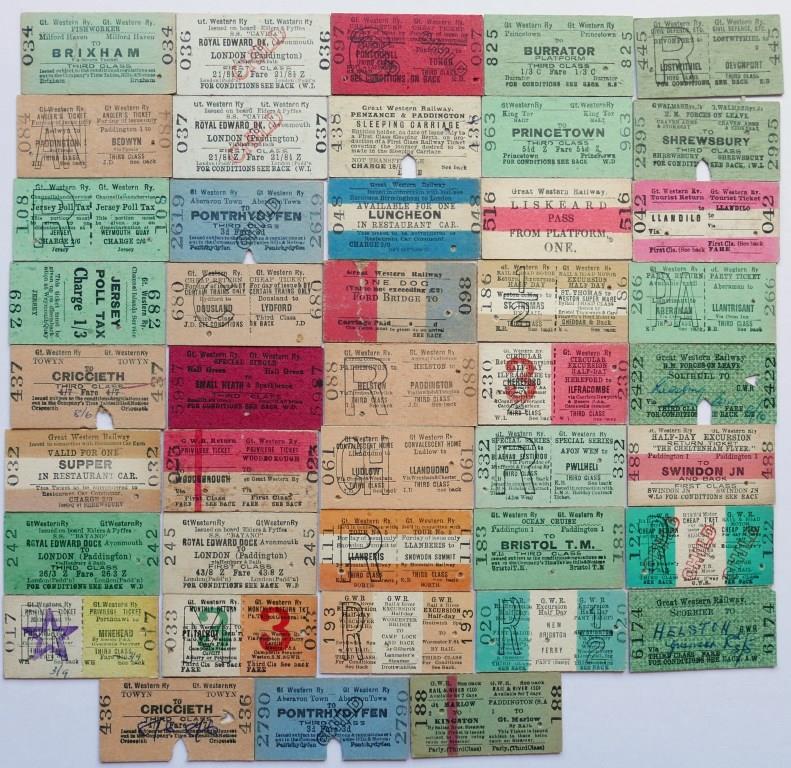 727Approx 40 GWR whole Edmondson tickets including examples for specials and tours including Angler’s Ticket, Fishworker, Jersey Poll Tax. Some issued. £85