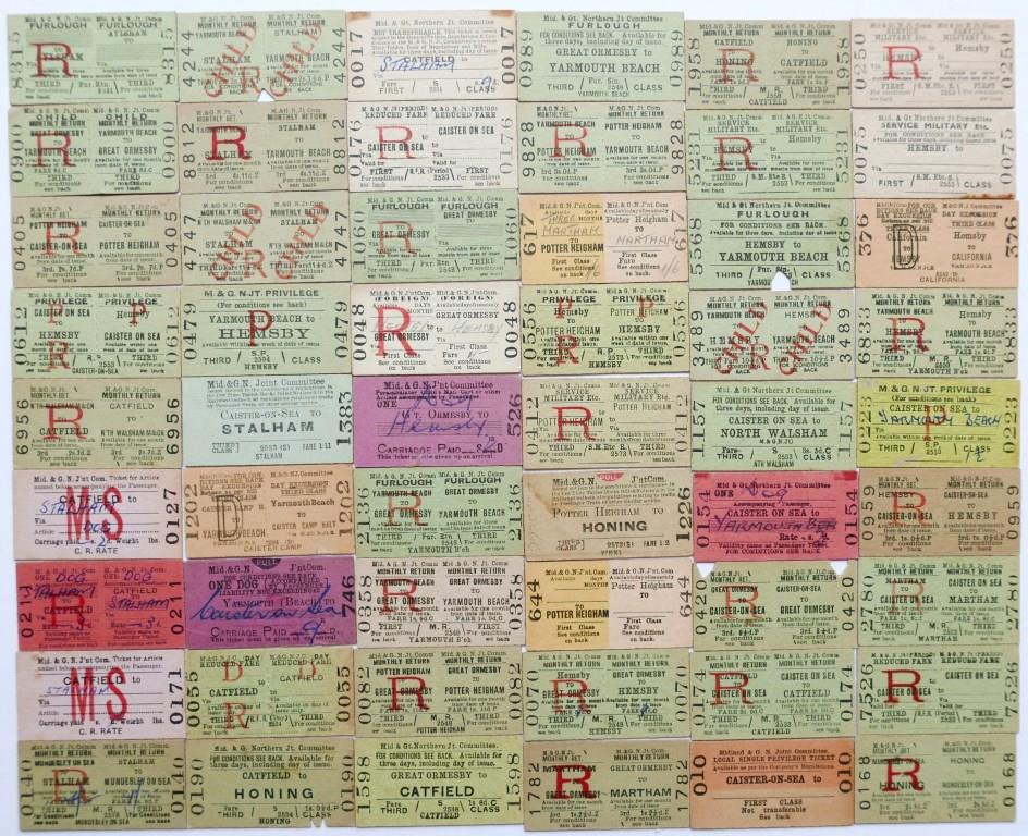758Approx 130 M&GN whole Edmondson tickets. Stations featured include Fleet, Bourne, Norwich City, Whaplode, Moulton, etc. A few issued. £55