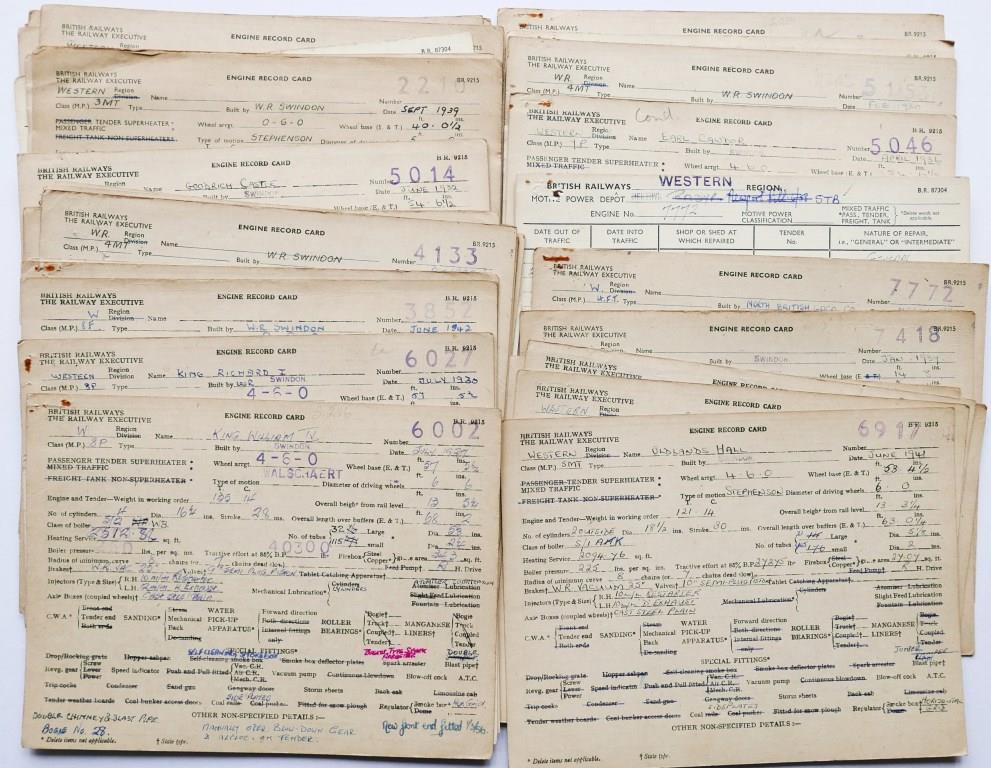 86Approx 85 BR Engine Record Cards for ex GWR locos including Halls, Castles, Granges and Kings. £560