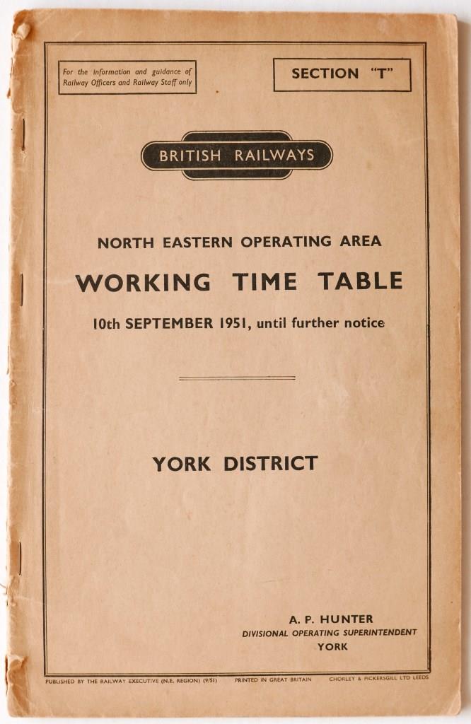 | 114 | BR(NE) section T working timetable York District. 96pp dated September 1951. | £6 |  |