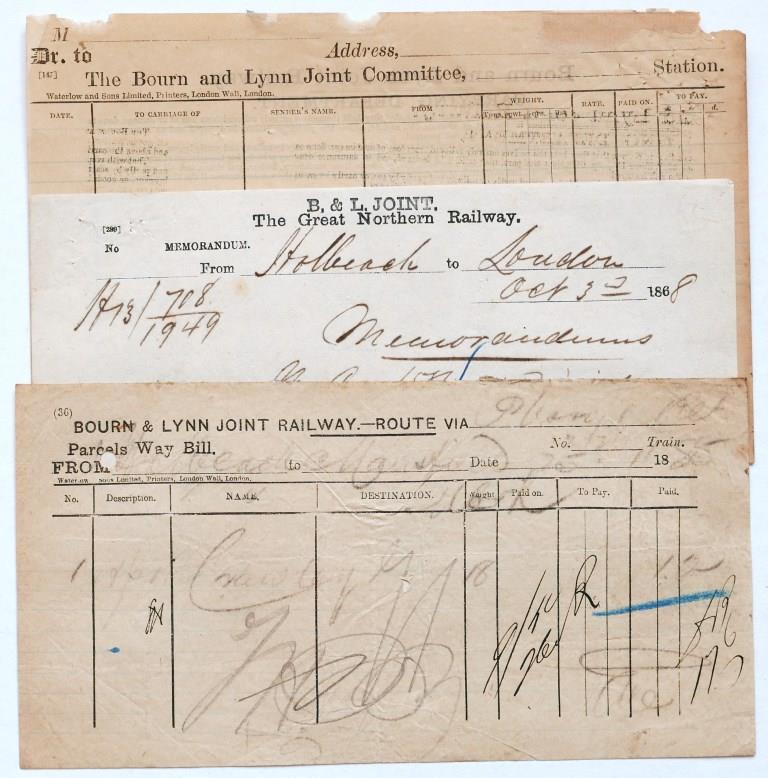| 628 | Bourn & Lynn Joint Railway parcels waybill, consignment note and memo. | £9 |  |