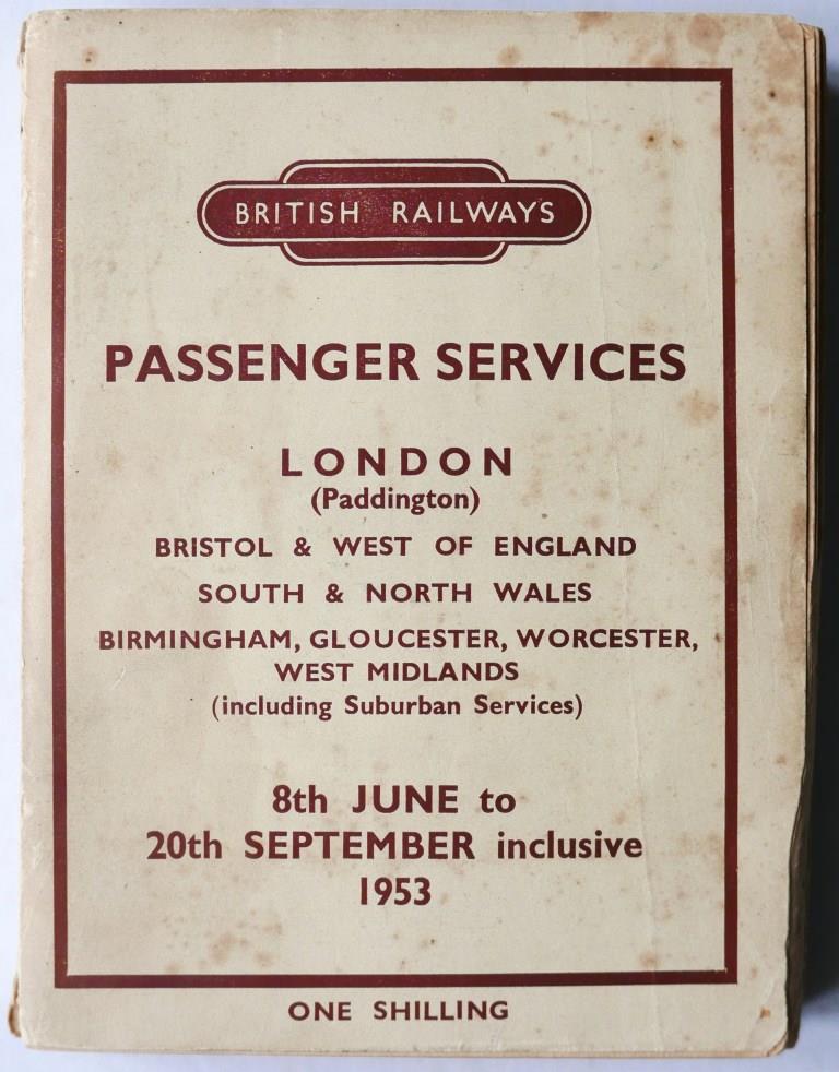 | 68 | BR(W) public timetable booklet for all the region’s services. Cream and brown, 476pp plus fold out map, dated June 1953. Slight foxing to covers. | £19 |  |