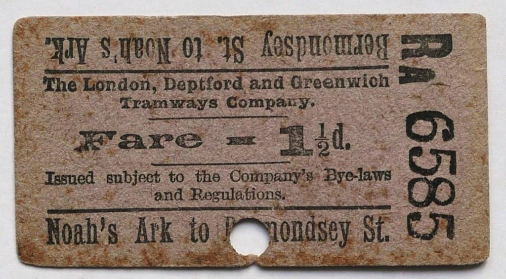 | 696 | London, Deptford and Greenwich Tramways 1½d geographical punch type ticket. | £25 |  |