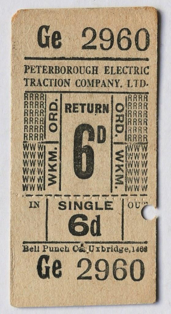 | 700 | Peterborough Electric Traction Co 6d numerical punch type ticket. | £11 |  |