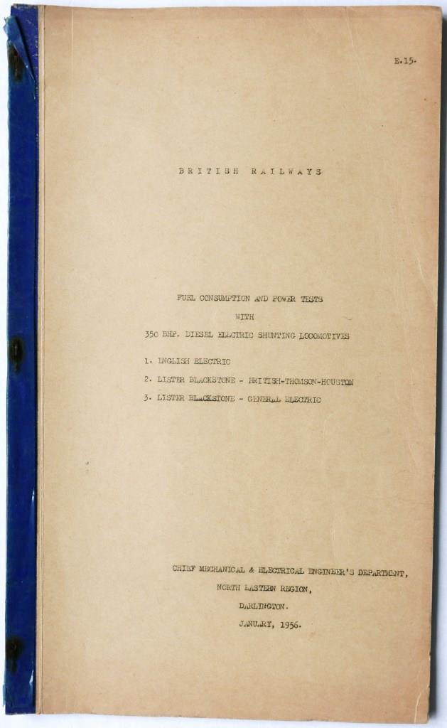 62BTC/BR foolscap sized document ‘Performance and Efficiency Tests Brown Boveri Gas Turbine Loco No.18000’. 10 typescript pages plus tables and charts. Dated 1951. £32
