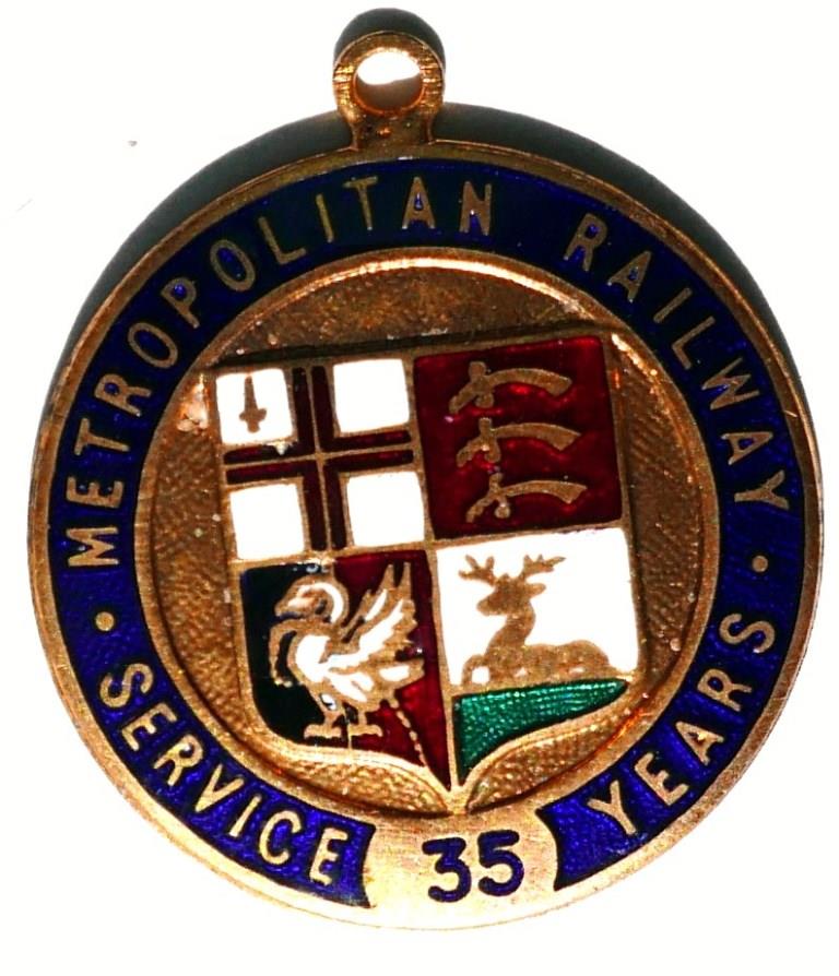 25Metropolitan Railway long service medal awarded for 35 years service. Coloured enamel on gilt showing coat of arms surrounded by title. Appears unissued. £16