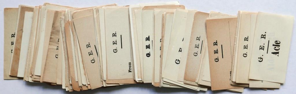 789Approx 30 wagon labels from various pre grouping railways including LBSCR, GWR, MR, SECR, GNR, LNWR, LSWR, Barry, Furness, etc. Many used. £55