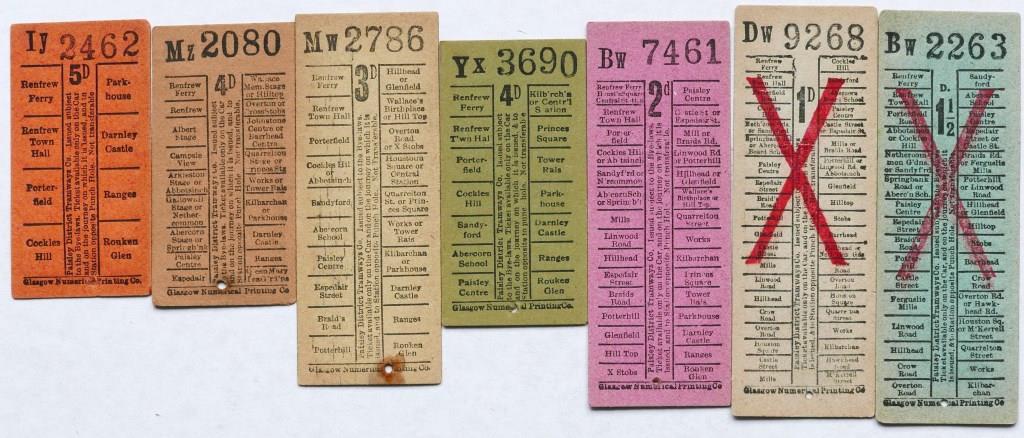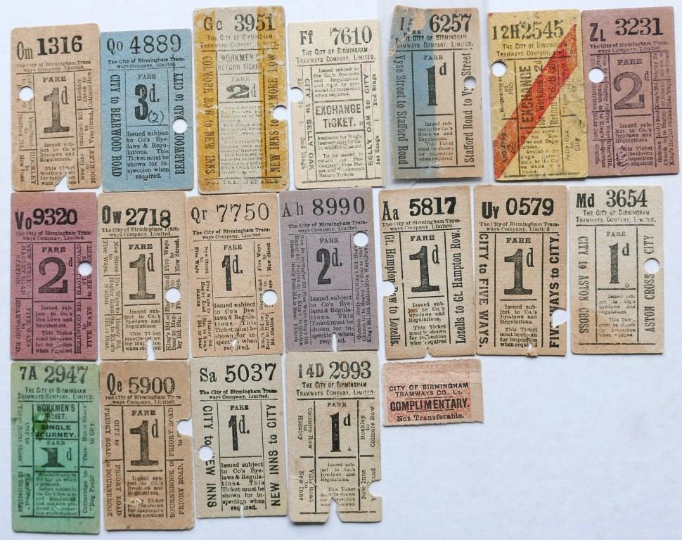 72945 LCC Tramways workman’s return geographical punch type tickets. Values up to 6d. Variety of routes, no apparent duplication. £70