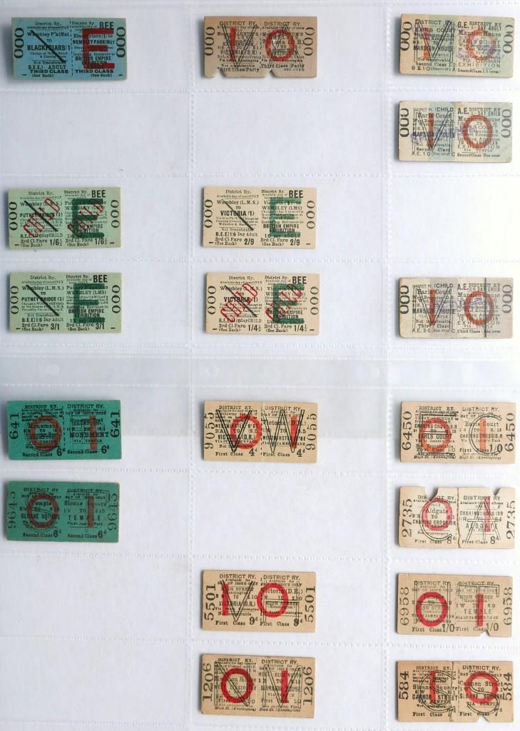 730Approx 61 District Railway 3rd class whole Edmondson tickets on coloured card with red ‘I’ overprint. All issued. Back damage to a couple. £10