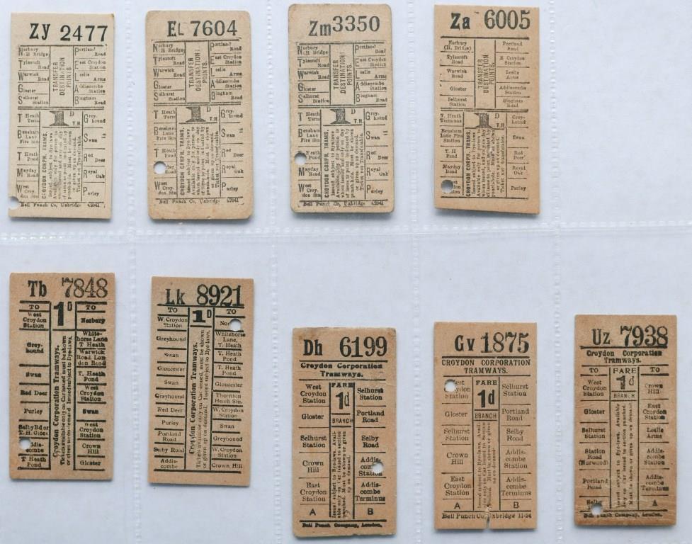 7359 Croydon Corporation Tramways geographical punch type tickets. All 1d.£7
