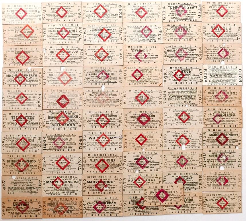 764Approx 60 BR Edmondson 1d red diamond platform tickets from a variety of stations. No apparent duplication. £32
