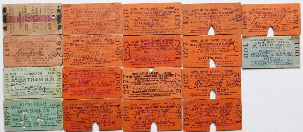 775Approx 18 NER whole Edmondson tickets mostly for accompanied cycles from various stations. Most issued. £36