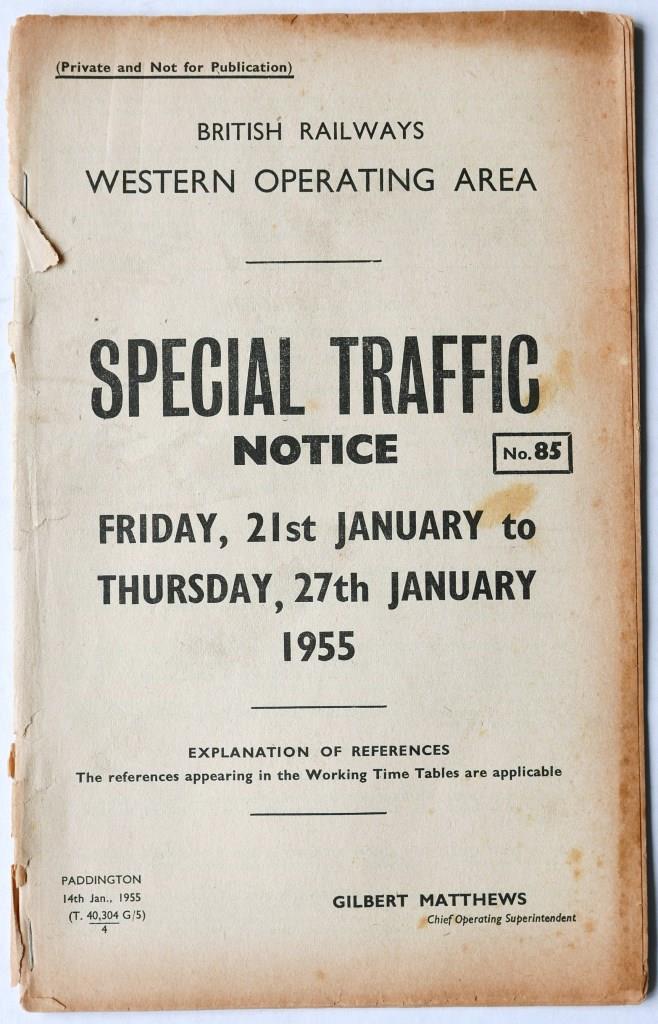 89BR(W) Special Traffic Notice No.85 dated 21st January 1955. 28pp. Covers re-stapled.£42