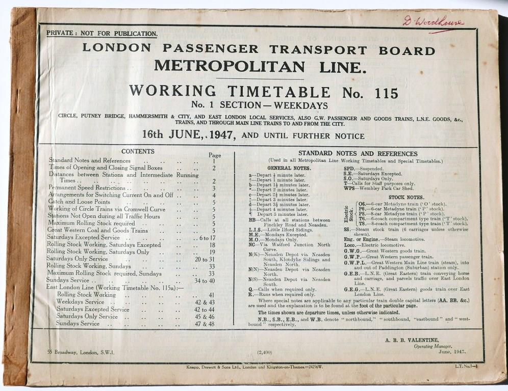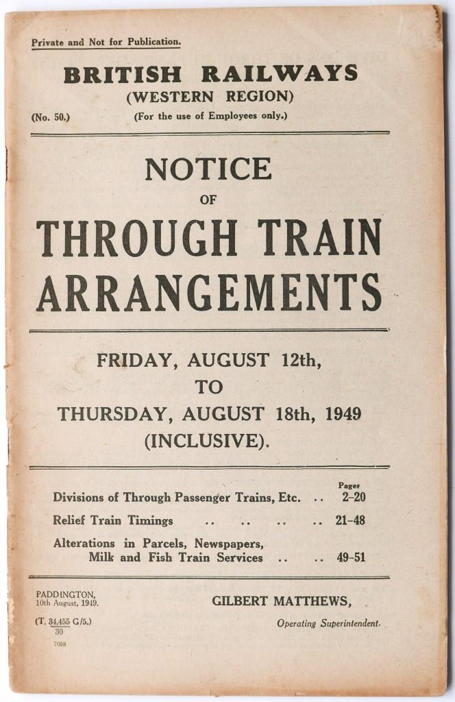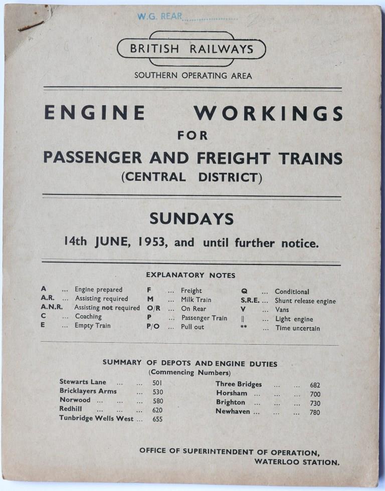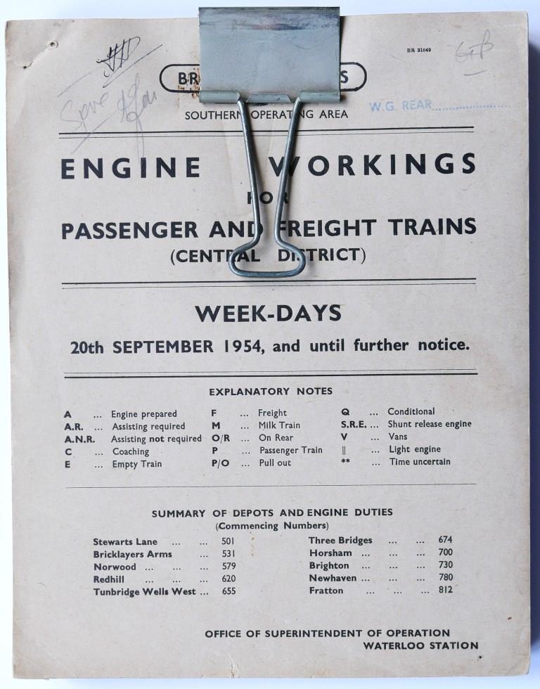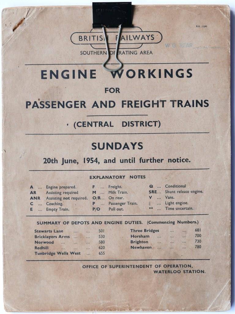 81BR(W) service timetable sections 1 – 16. 1000+pp bound into 3 separate sections in modern leather bound, hardback covers with title in gold on spine. Dated September 1952. £90