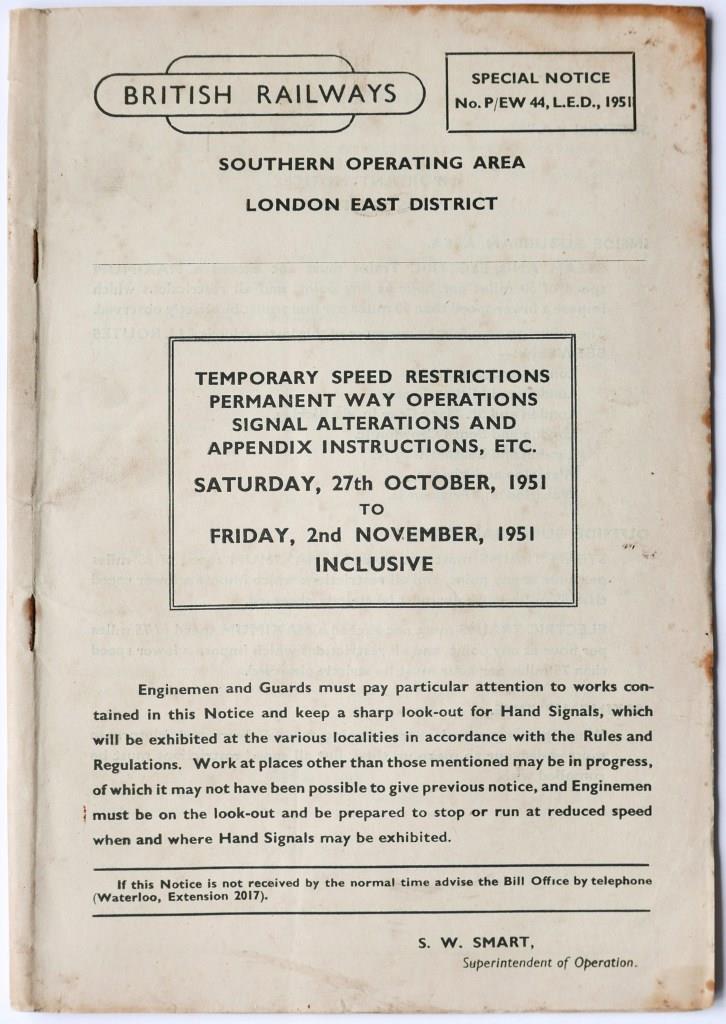 73BR(W) booklet ‘Temporary Speed Restrictions, Permanent Way Operations etc’. No.K2/125 dated 10th October 1951. 76pp. £60