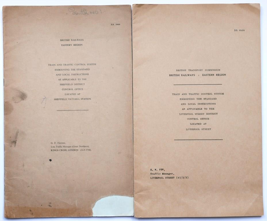 74BR(M) Midland Division ‘Passenger Train Marshalling’ booklet. 35pp dated September 1956. Front and back pages detached. Annotated amendments. Plus similar dated June 1956 and with large tear and loss to front page. 70pp. £210
