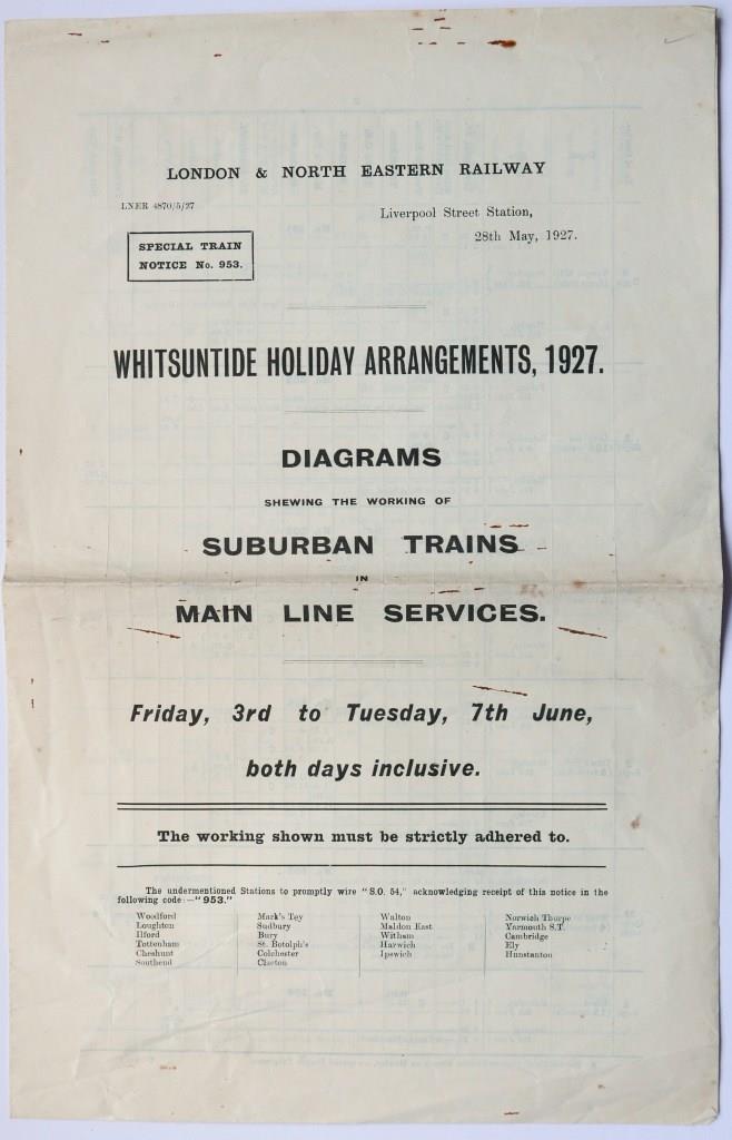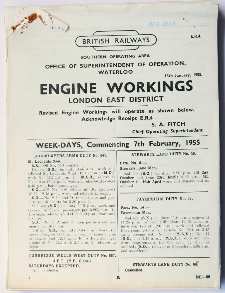 76BR(E) Great Eastern 6 typescript page, foolscap sized document ‘Suburban Area Diesel Unit and Diesel Unit Drivers Workings’. Dated June 1963. £55