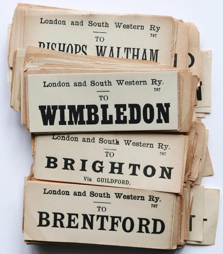 780Approx 110 pre grouping companies whole Edmondson tickets including MR, LNWR, GER, SECR, LBSCR, NER. Condition varies, back damage to a few and occasional duplication. £170