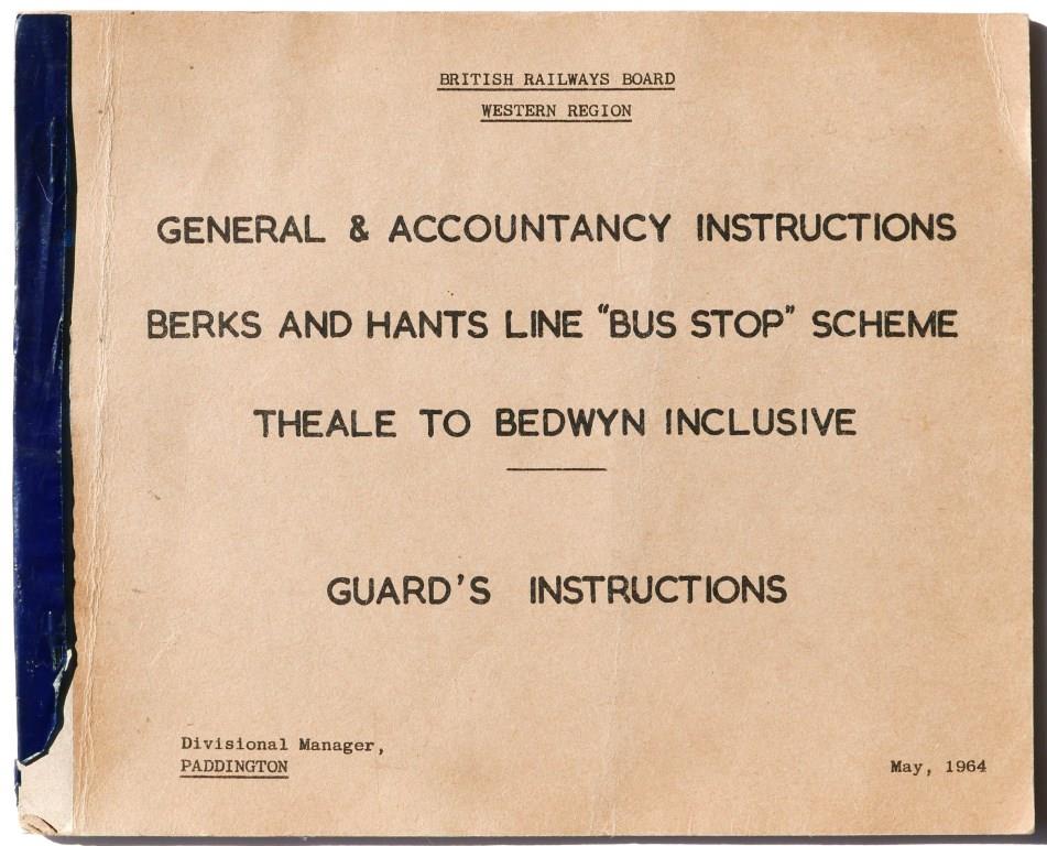 70BR(W) typescript booklet ‘General & Accountancy Instructions Berks and Hants Line “Bus Stop” Scheme Theale to Bedwyn Inclusive. Guard’s Instructions’. Card covers, 15 pages. £26