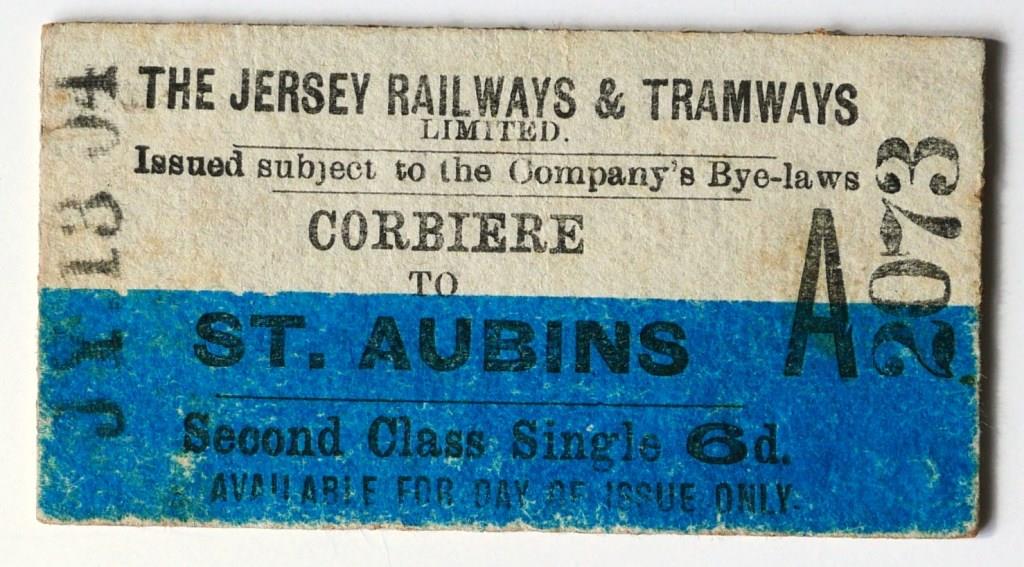 718Jersey Railways and Tramways Ltd whole Edmondson 2nd class single from Corbiere to St.Aubins. Issued, minor back wear. £65