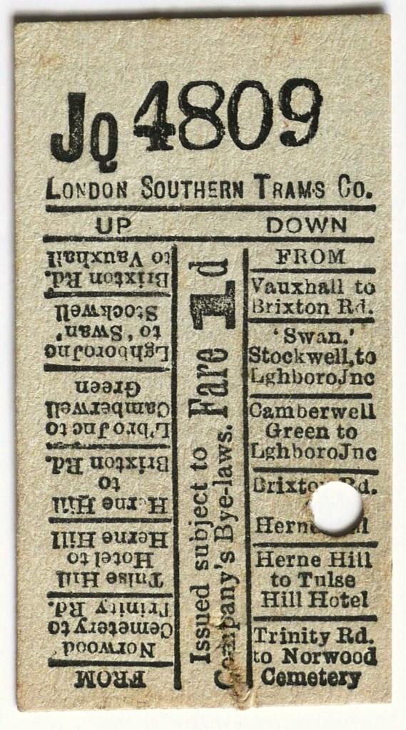 724London Southern Trams Co 1d geographical punch type ticket.£11