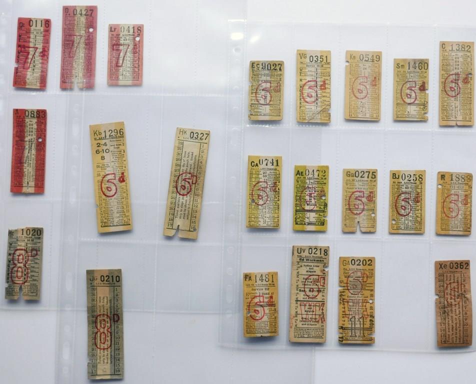 748Approx 105 LPTB trams 1d geographical punch type tickets from various routes.£10