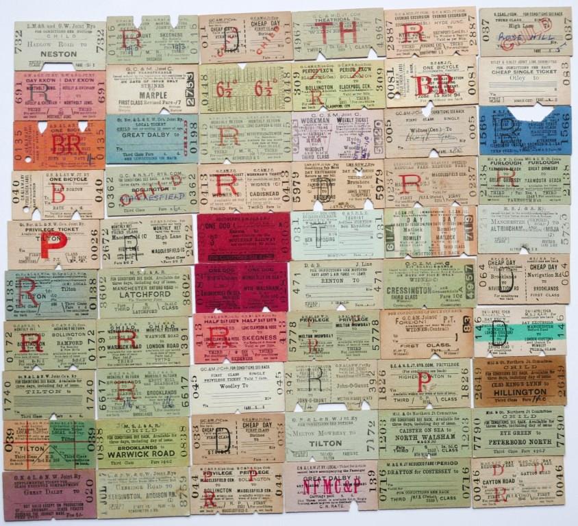 782Approx 93 whole Edmondson tickets including 10 LMS, 5 GWR, 17 MSJ&AR, 11 M&GNR, 10 LBSCR, 9 L&YR, 5 LNER, 3 OA&GBJR, 2 LSWR, 2 Mersey, 6 LMS-NCC, 3 CLC, 2 GC& Mid Joint, 8 LNWR. Most issued, condition varies. £110