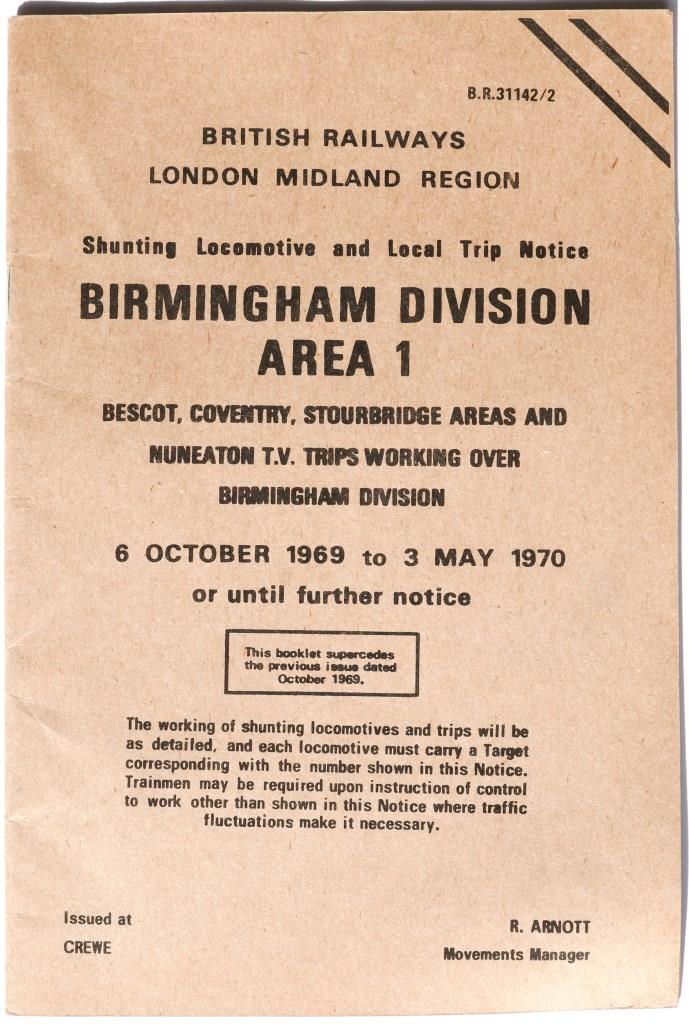 79BR(M) booklet ‘Shunting Engine & Local Trip Notice Birmingham Division Area 1 - Bescot, Coventry, Stourbridge, etc’. 35pp dated October 1969. £22