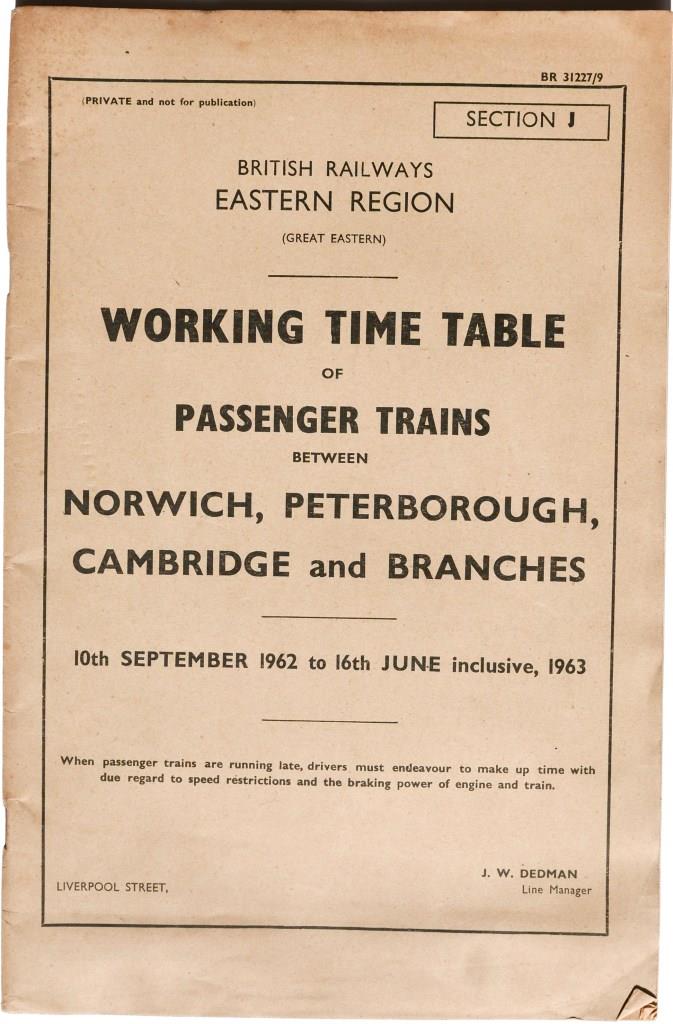 80BR(E) Great Eastern section J working timetable of passenger trains between Norwich, Peterborough, Cambridge and branches. 70pp dated September 1962. £28