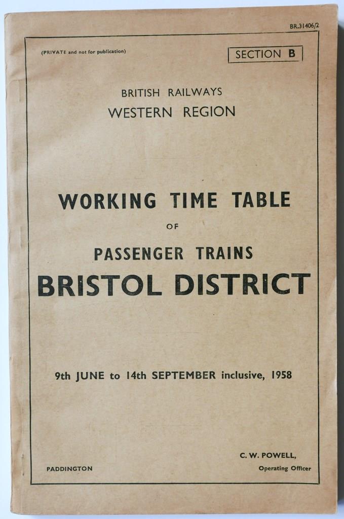 87BR(W) section B working timetable of passenger trains Bristol District. 260pp dated June 1958. £2