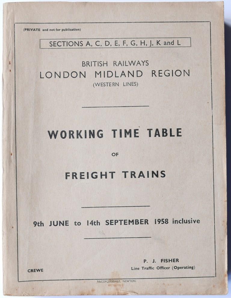 86BR(M) Western Division sections 1 - 11 and 13 working timetable of freight trains. 700+pp dated September 1952. Rusty staples. £85