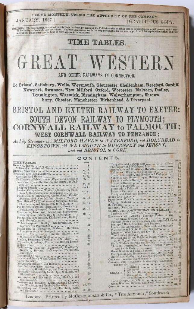 | 22 | Measom’s presentation copy of the ‘Official Illustrated Guide to the GWR, OW&WR, Chester & Holyhead Lines and IOM’. Cloth bound, hardback covers with ornate title in gold on front and on spine. 800+pp published June 1860. Title page detached. | £65 |  |