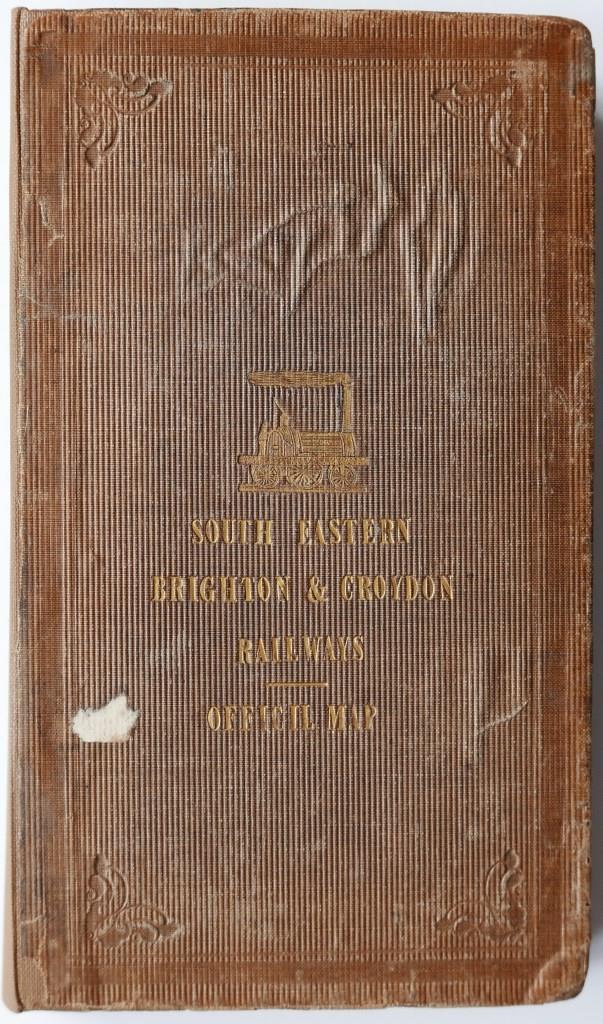 | 24 | JR Jobbins published ‘London and Brighton Railway Guide’. Cloth bound hardback covers with title and artwork in gold on the front. 52pp plus adverts and fold out map. 2nd edition published 1841. Tape repairs inside covers. | £42 |  |