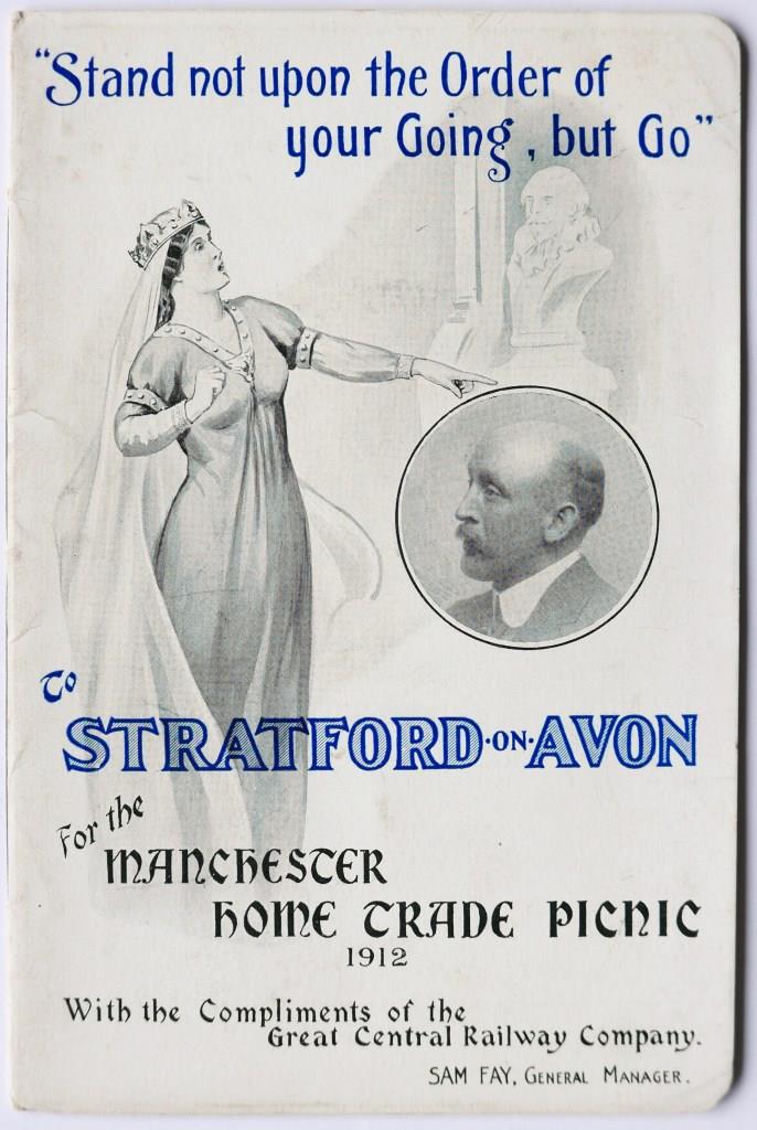 | 638 | GCR guide book and tour programme for the Manchester Home Trade Picnic visit to Stratford upon Avon and Shakespeare’s Country on June 27th 1912. Illustrated card covers, 16pp. | £32 |  |