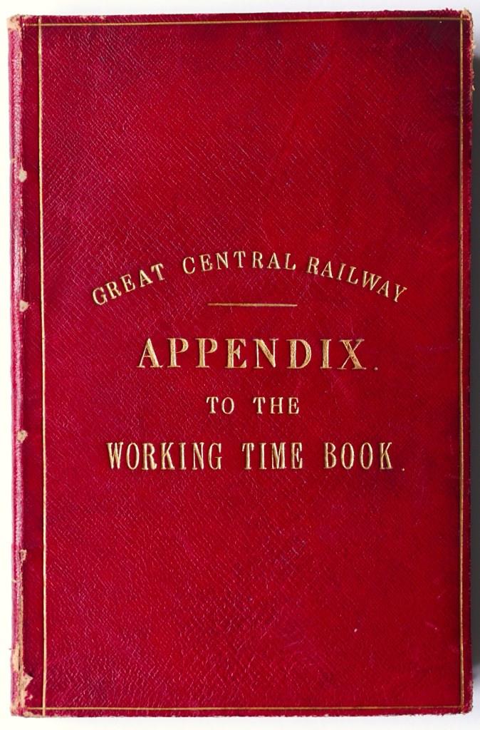 | 639 | GCR appendix to the working timetable, No.3 dated November 1897. 214pp contained in leather bound, hardback covers with title in gold on front. | £140 |  |