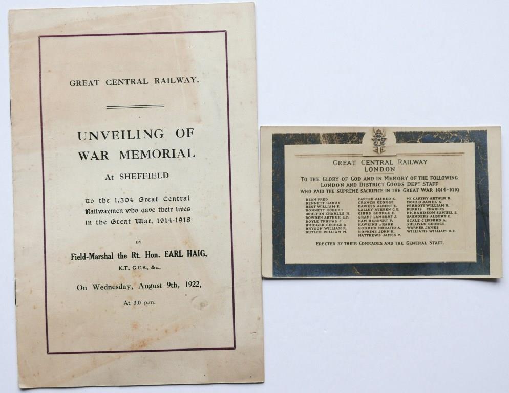 | 642 | GCR programme for the unveiling of the war memorial at Sheffield on 9th August 1922. 8pp. | £65 |  |