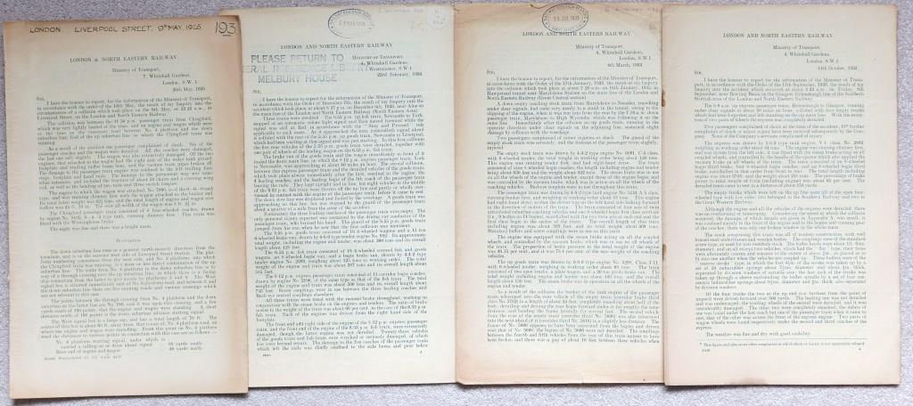 76 reports into accidents and collisions on the LNER. Waverley July 1929, Marylebone August 1924, West Hartlepool July 1923, Selby August 1923, Liverpool St April 1923, Finsbury Park November 1926. £32