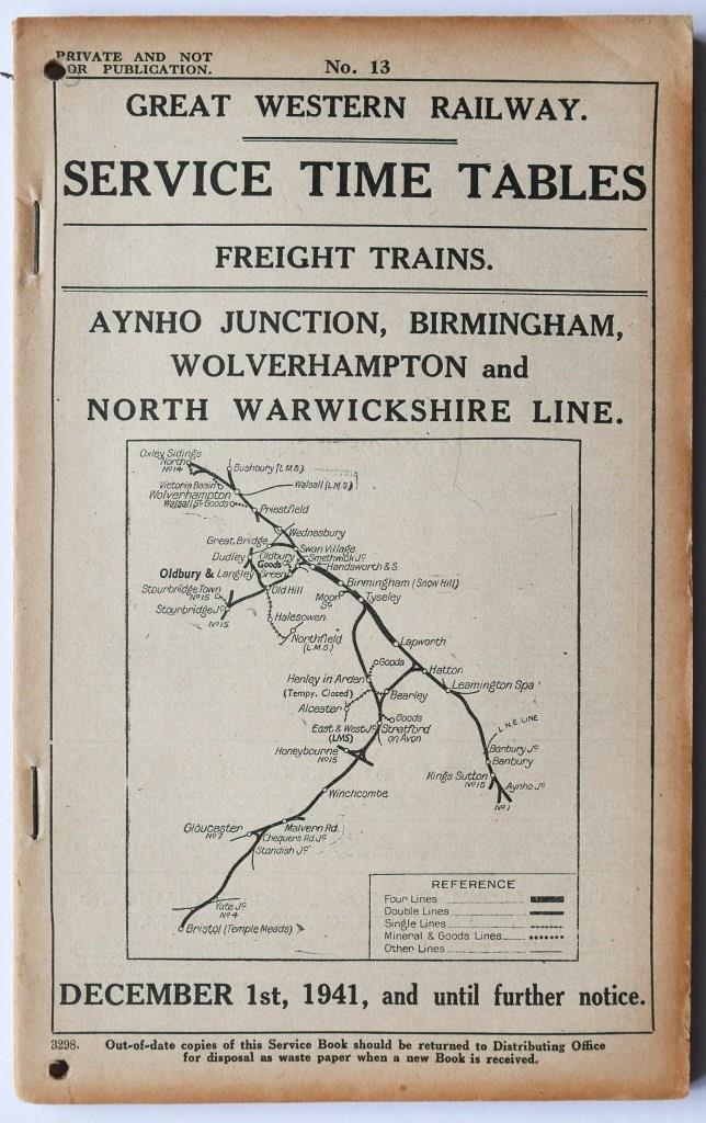 81BR(M) Western Lines section A working timetable of freight trains between Camden and Lichfield and branches. 79pp dated September 1961. Plus similar dated September 1962 and September 1963. £6