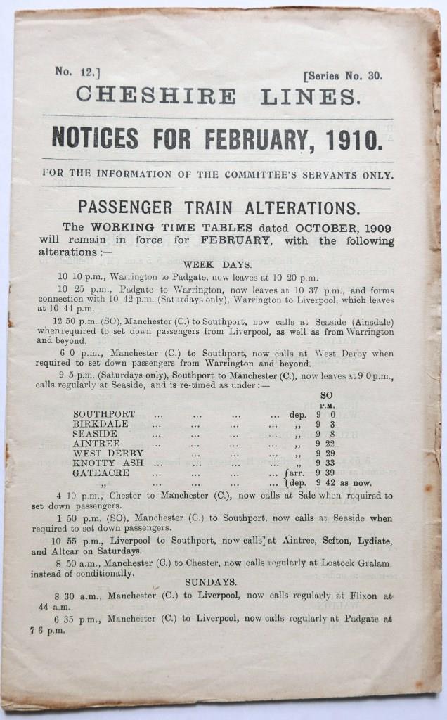 71CLC bookmark ‘Right Away and Right Way’. Blue print on blue card, front showing signal, rear showing timetable for Manchester – Liverpool service. Dated December 1930. £42