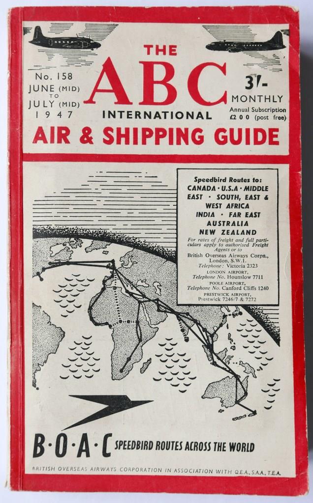 47Skinner & Co published ABC International Air & Shipping Guide. Illustrated cover showing BOAC route map, 200+pp plus fold out map, dated June 1947. £55