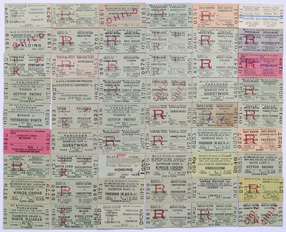 758Approx 130 M&GN whole Edmondson tickets. Stations featured include Fleet, Bourne, Norwich City, Whaplode, Moulton, etc. A few issued. £55