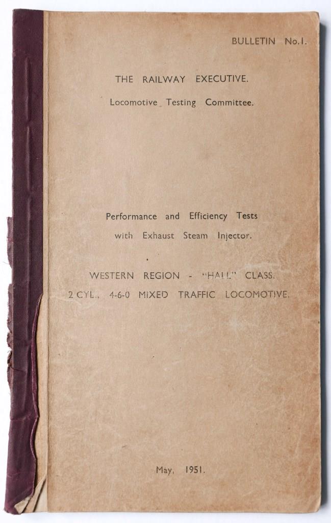 | 105 | Railway Executive foolscap sized document. ‘Performance and Efficiency Tests Hall Class Locomotives’. 30+ typescript pages and tables, dated May 1951. | £26 |  |