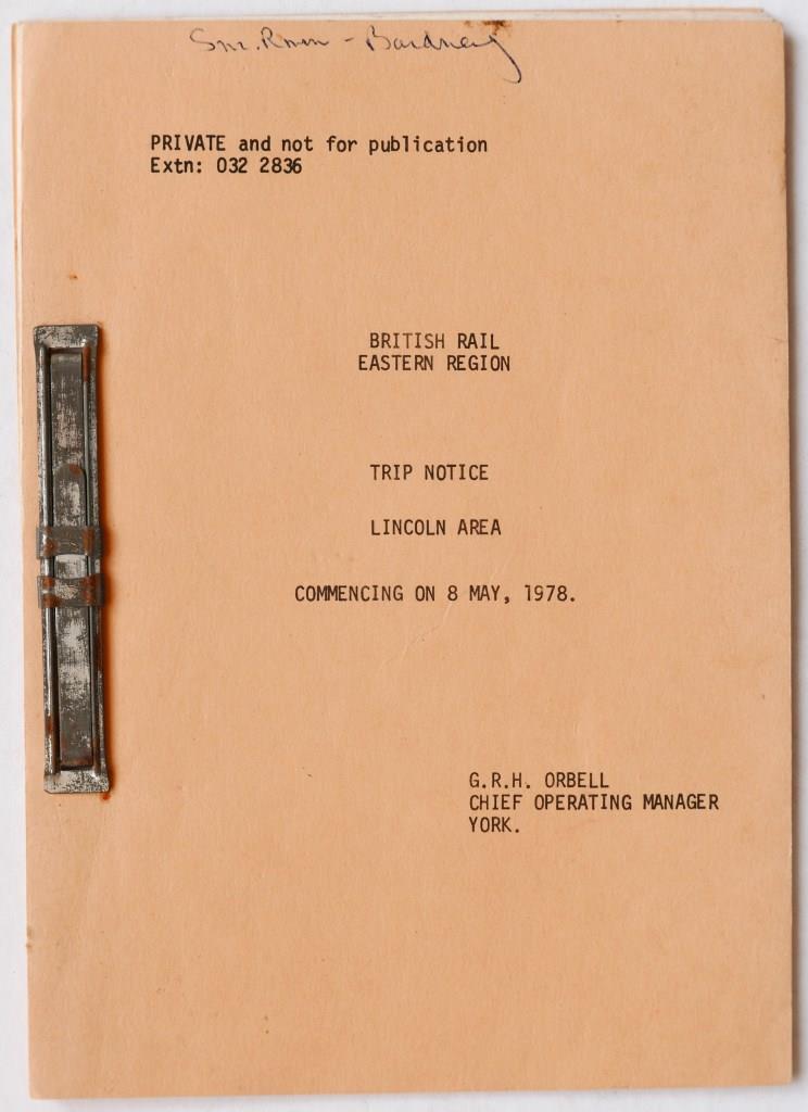 | 116 | BR(E) Trip Notice Lincoln area. 8 typescript pages, dated May 1978. | £90 |  |