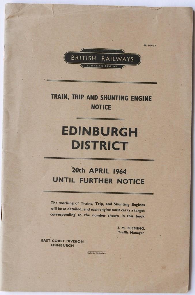 | 123 | BR(ScR) booklet ’Train, Trip and Shunting Engine Notice Edinburgh District’. 34pp dated April 1964. | £17 |  |