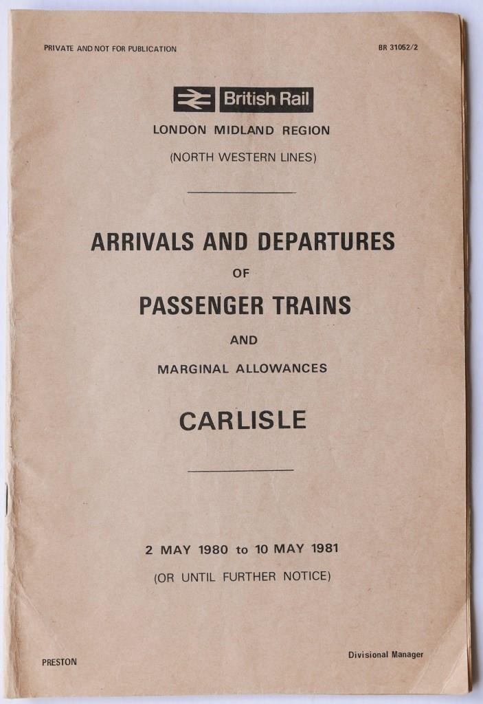 | 124 | BR(M) North Western Lines booklet ‘Arrivals and Departures of Passenger Trains and Marginal Allowances at Carlisle’. 35pp dated May 1980. Ink amendments. | £4 |  |