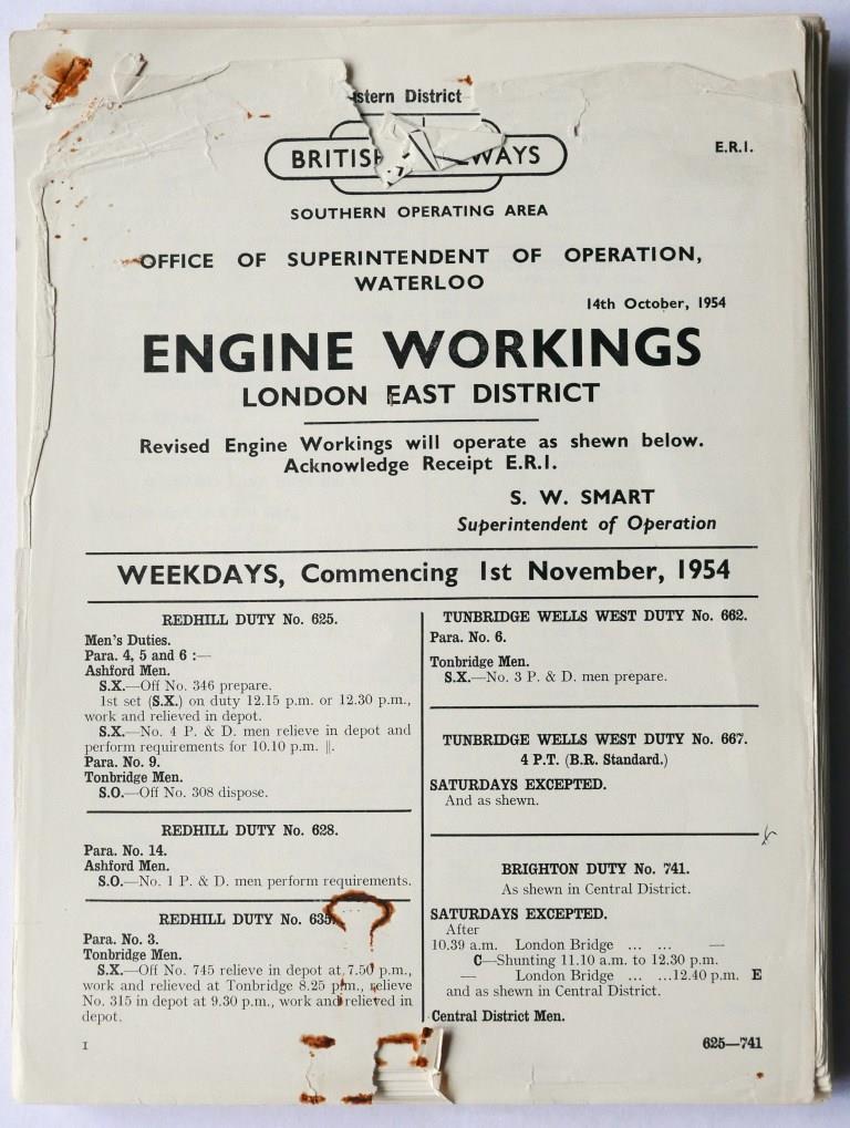 | 66 | BR(S) London East District booklet of revised engine workings for weekdays. 60+pp dated December 1953. | £110 |  |