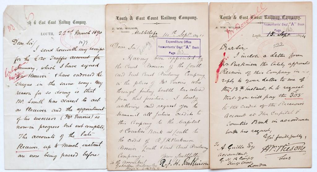 | 626 | 3 Louth and East Coast Railway headed letters dated 1890 – 1894. Tear and loss to one. | £36 |  |